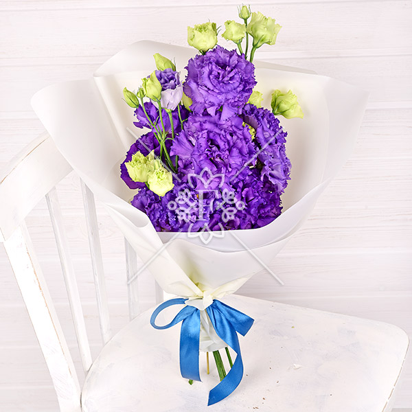 Эустома  фиолетовая – 5 шт., упаковка, лента.